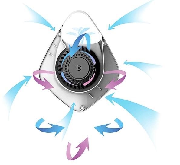The fan pulls air through the filtration system to ensure you breathe clean filtered air.